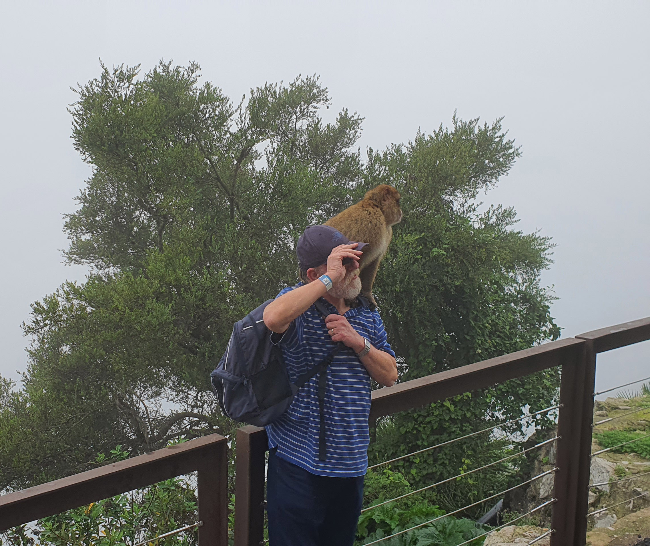 This is a new friend I met during a visit to Gibraltar. I think he wanted my hat so I had to hang on to it.